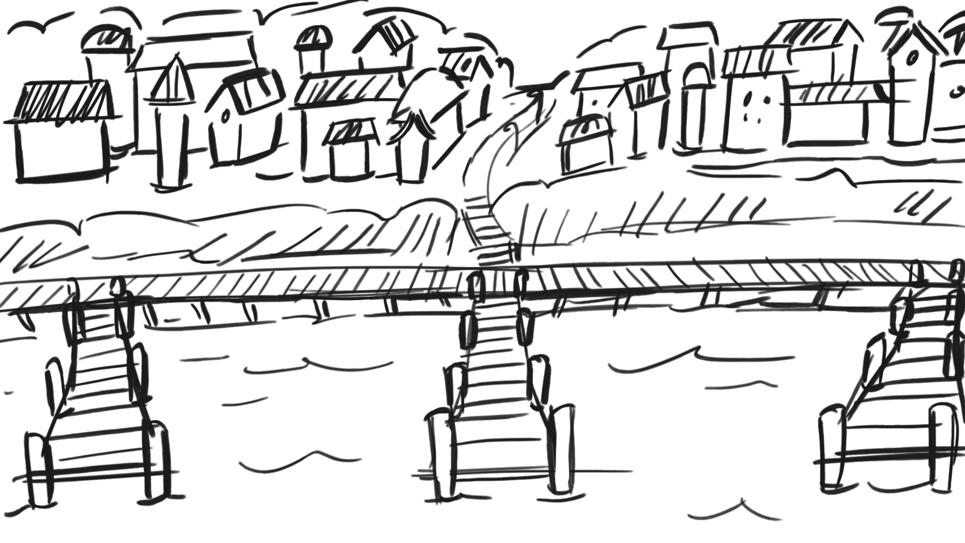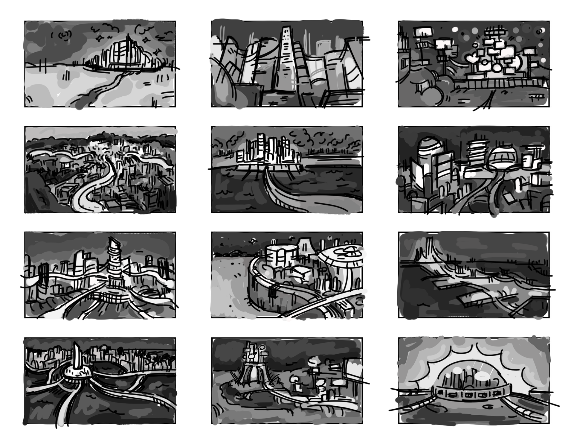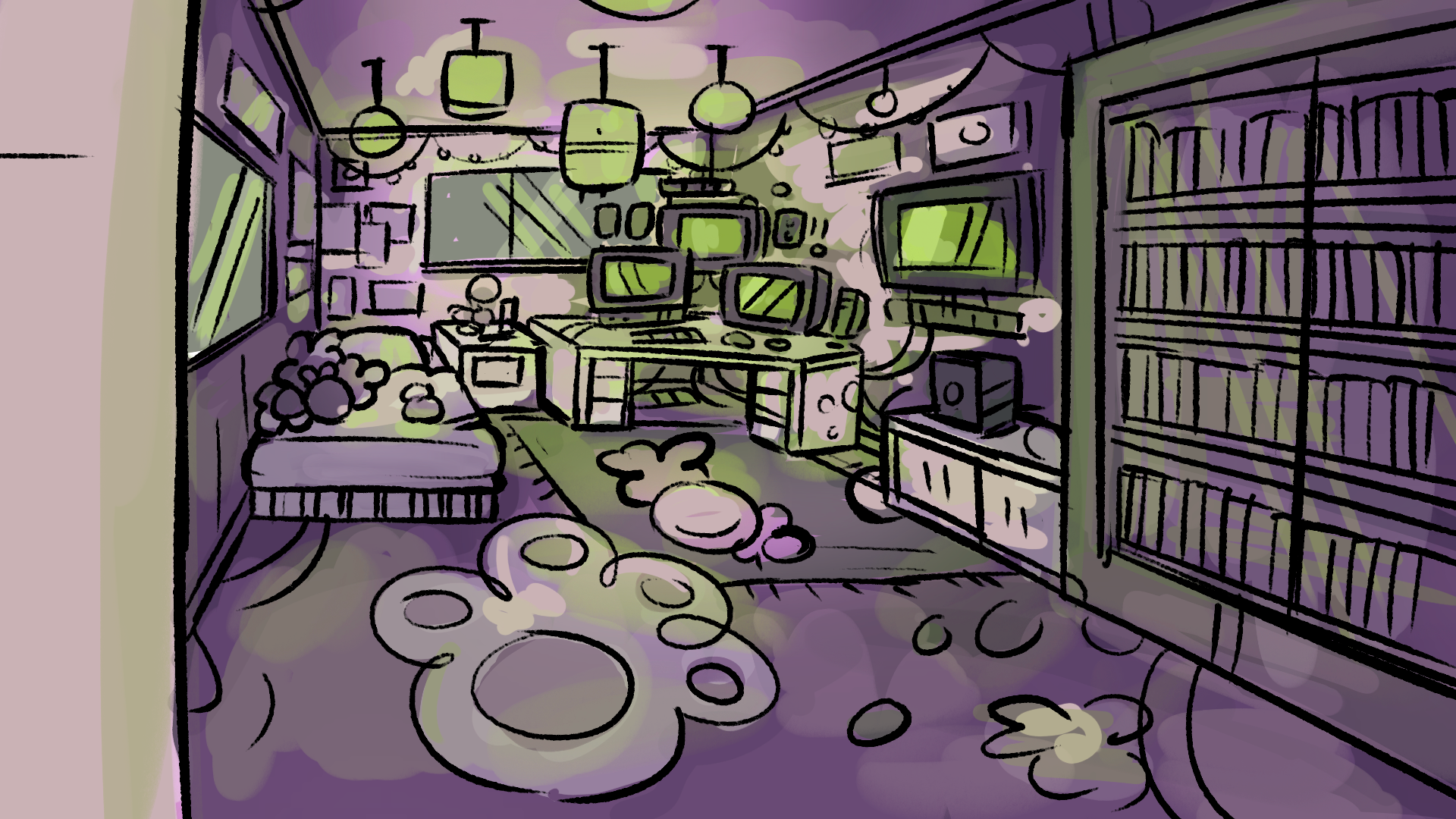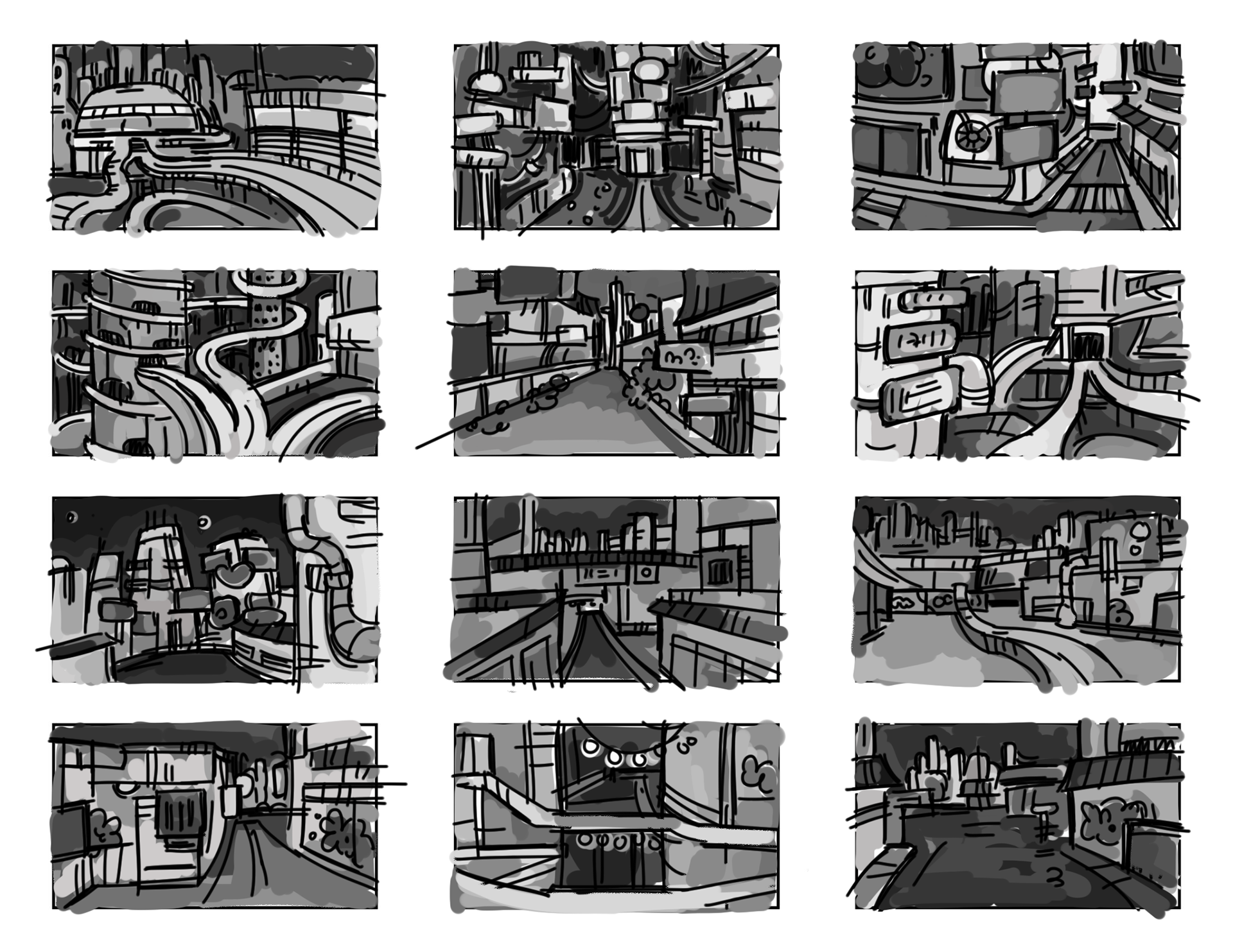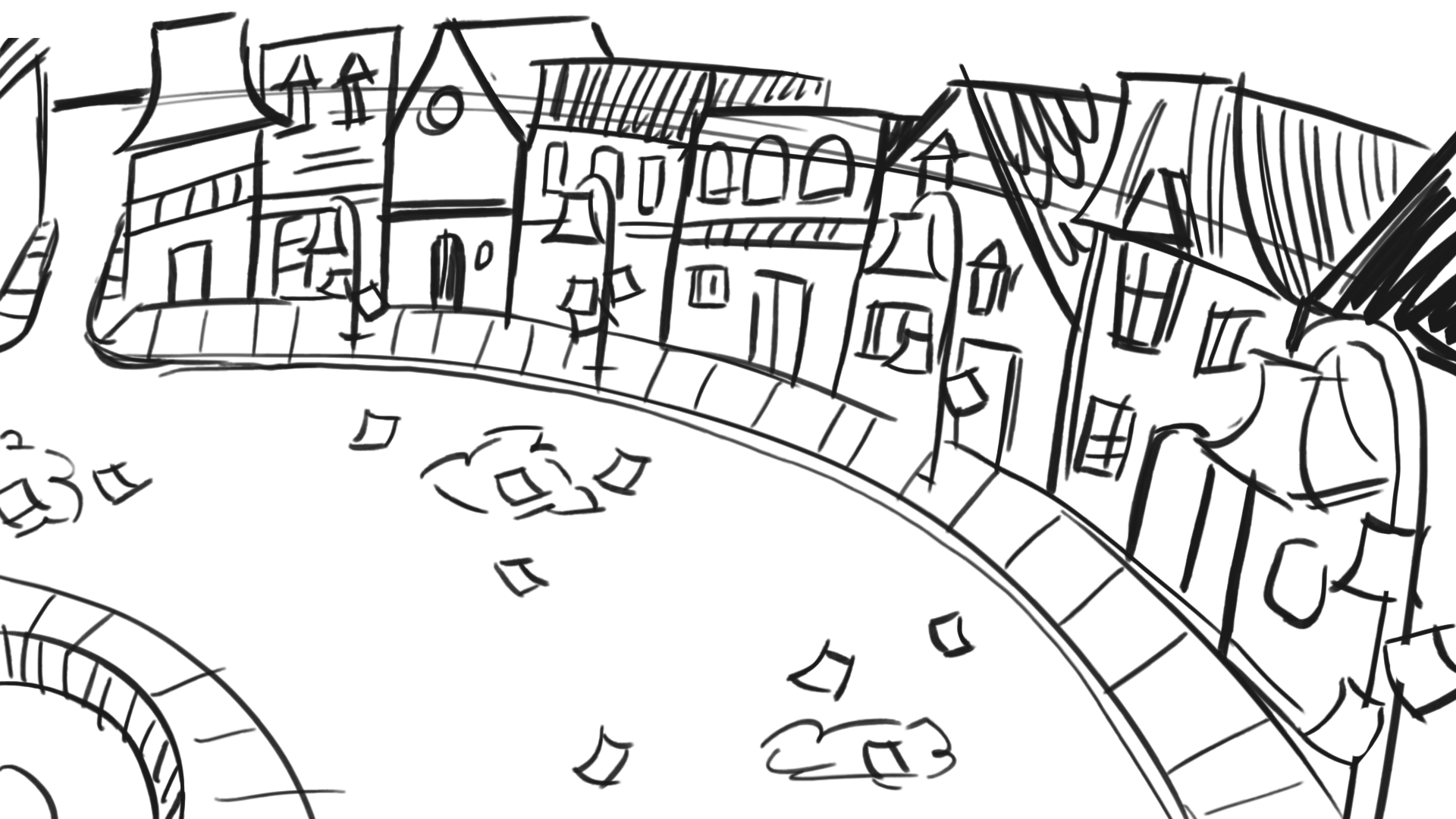 Background design from thumbnail stage to final layout for Shepherd Shippington and the Missing Mutts.